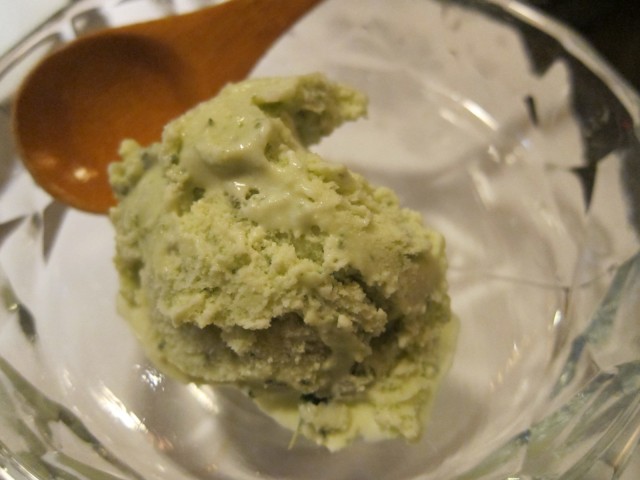 カフェ・デュ・グラスさん、感謝!ハーブの女王のバジルアイス、何とも言えない香りは、まさに、お酒の席の大人のデザート