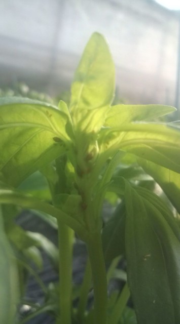 よーく見ると、葉っぱの裏に、アブラムシが!