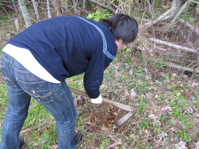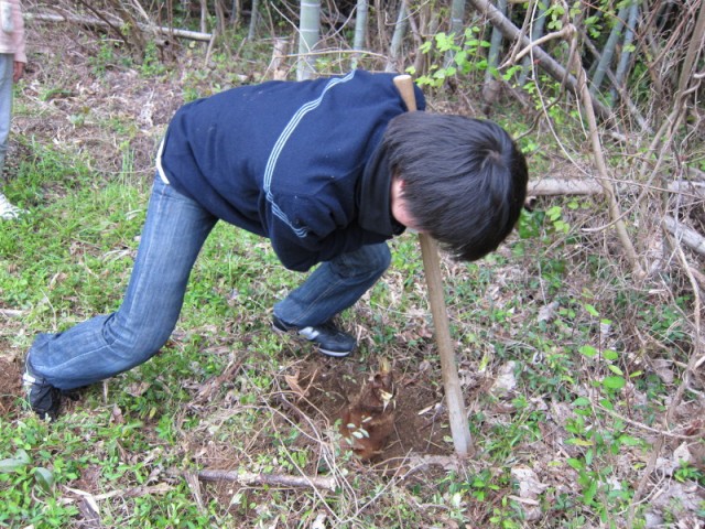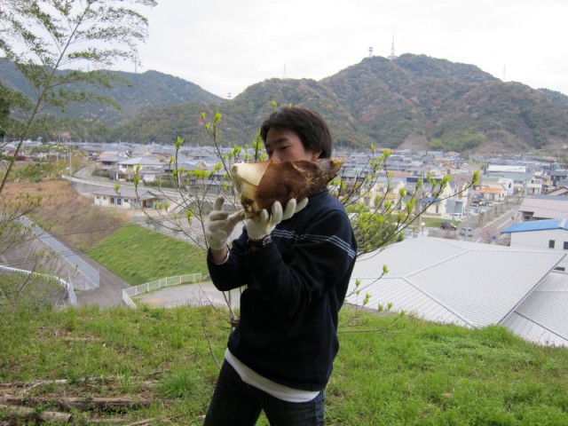パリから帰省中の岳くん、たけのこ堀り初挑戦!