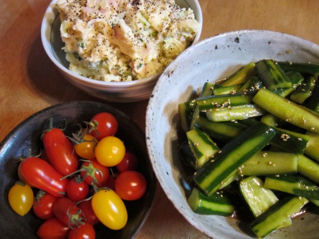 きゅうりキムチ、自家製ジャガイモの、ポテトサラダ、
