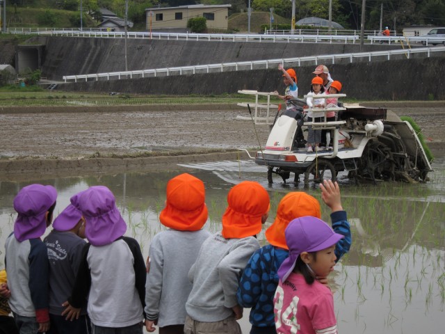 美味しいお米になあれ!無事、田植え終了、最終日は保育園児と一緒に植えました