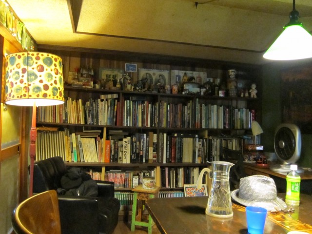 世界中から集められた、食器やオブジェ、レコードジャケット、本、そして、藤島晃一の、作品が、びっしり!