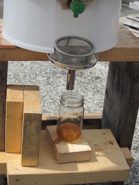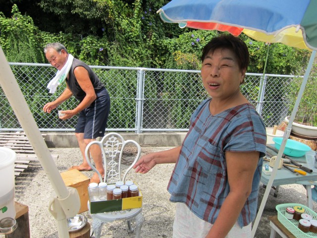聞くと、今、庭ではちみつを搾ってるらしい・・・