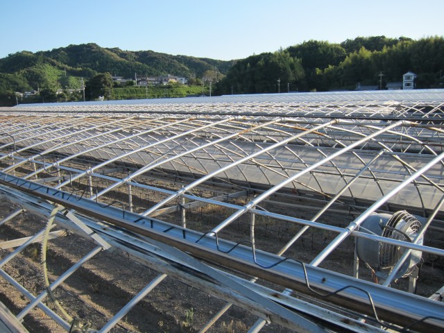 ハウスのビニール張りは、昔ながら、近所の農家と、