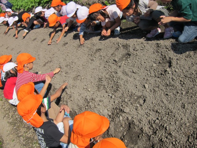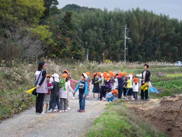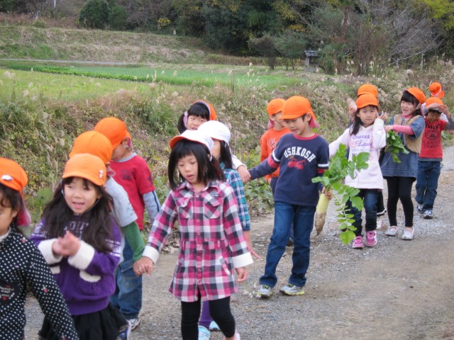 大根の間引きに大興奮の園児たち!