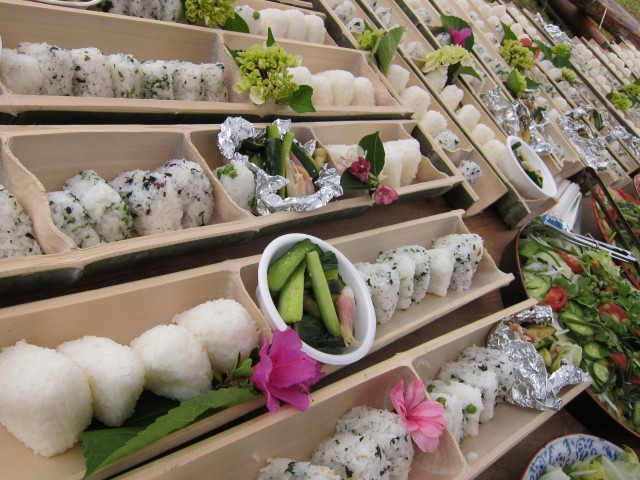 毎回、農家の奥様方手作りの、仁井田米のおにぎりや、