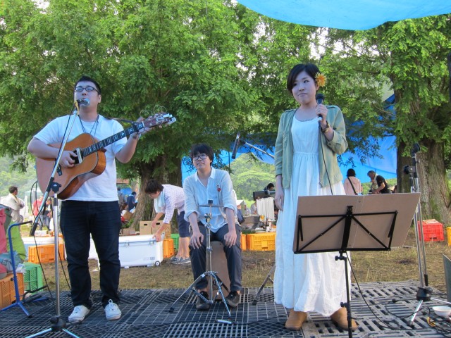 さあ、いよいよ、メタセコイアの木の下で念願のライブです。