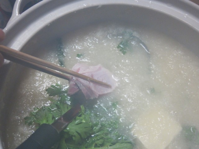 鍋いっぱいの大根おろしに、日本酒(清酒)と白だしをたして、ぐつぐつ。ブリのミゾレシャブシャブです。甘い入河内大根ならではの、最高の雪鍋。〆はご飯を入れて、雑炊にしたら、お汁もすべて美味しくいただけます。