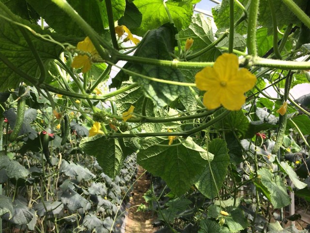 昨年10月に定植し、11月上旬から収穫始まったキュウリ。