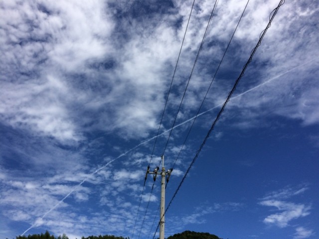 私は、クワを片手に青空の下、気持ちのいい景色です。