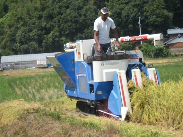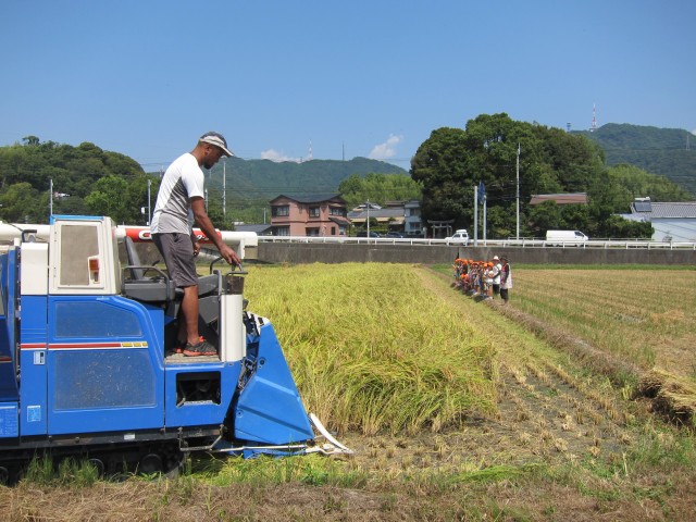 途中からは、2人ずつ、コンバインに乗り、運転席から稲穂がどんどん刈り採られていくのを楽しそうに見ておりました。