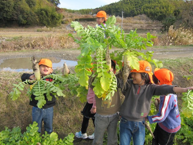 田植えや稲刈り、大根の種蒔き、収穫を一緒にした園児達も、来年春にはピカピカの小学生。