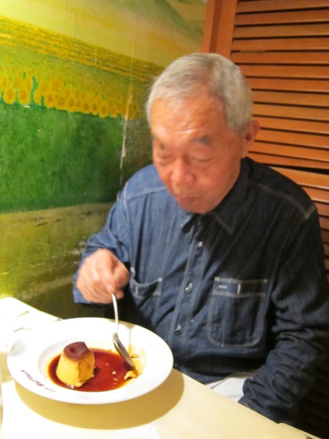ラ・ベットラ人気NO1デザートのプリンを美味しそうに召し上がる永田先生。