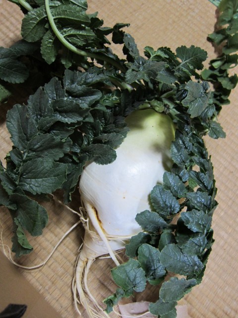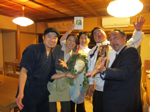 もしかして・・・。早速、お礼の電話をしたところ、予想通り、桜島大根。ヒャー!浜松で採れても桜島大根。どうやってたべようかな?(初野菜には、以上に興奮する私)そうだ!3個あるので、草やに持って行って、和田マスターの料理方法も学びましょう。本は、マンボと和田マスターにもプレゼント。