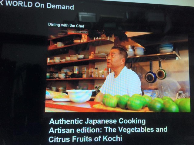 今年で3年目となります「土佐学協会〜土佐の酢みかん文化研究会〜」の活動ですが、2015年は、目に見える様々な形でご紹介していただきました。12月18日(金)放送の、「NHKワールド」のテレビ番組「Dining with the Chef」(http://www.nhk.or.jp/dwc/)の取材では、長崎雅代理事の機転で、世界140ヶ国で土佐の酢みかんの存在を広く認知していただきます。