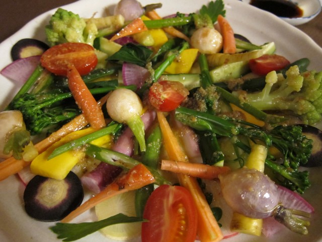 うちの野菜やハーブ、タケノコなどを、持ち込み、いつものように、高知の食の達人、宇賀さんにおまかせ。