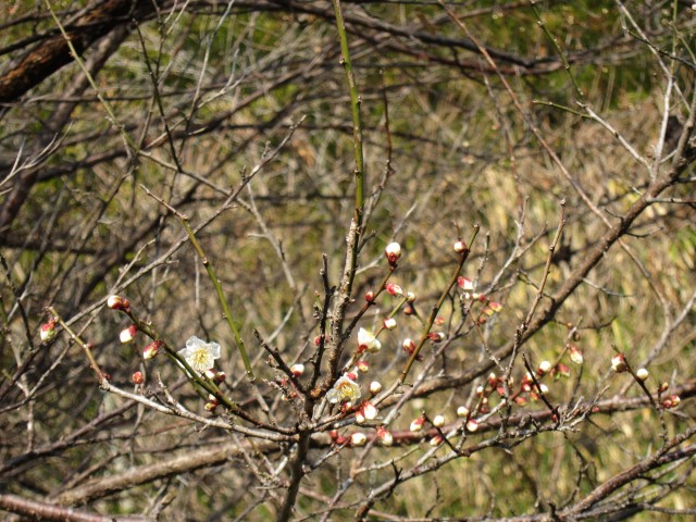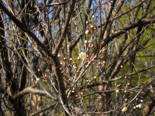 早くも裏庭の白梅が咲いています。