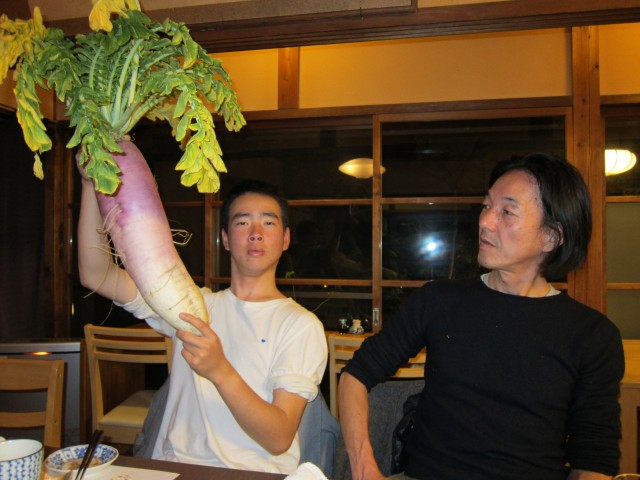 初めて見て食べる郷土野菜の入河内大根の大きさと、