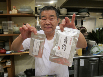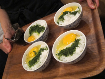 〆は、白いご飯に、青のりと卵。