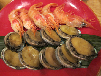 あわびとかぶと海老の酒蒸し