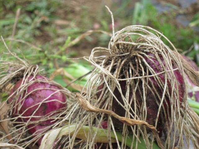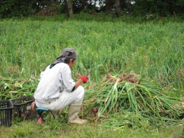 畑のかなり手前から玉ねぎの香りが、漂ってきます。