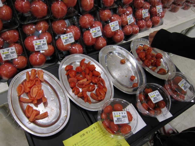 土佐市の、ファーム輝さんのトマトは、ミニトマトや、フルーツトマトも、試食できるとあって、子供から大人まで、大賑わいでした。