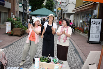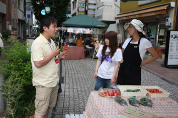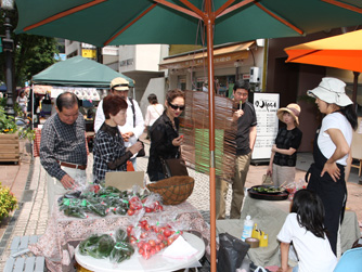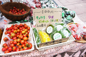 午前中、岡崎農園の美香ちゃんたちとセッティングをしている間にも、久々の出店のうわさを聞きつけておいでて下さったお客様で、新鮮野菜はどんどん売れて行きました。