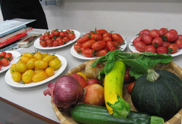 そして時にはトマトの味を比べてもらいながら