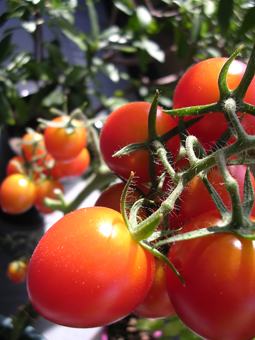 ベランダでトマトを育てました。行きつけのレストランに持ち込んで食べました♪