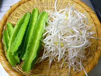 2、四角豆ともやしに