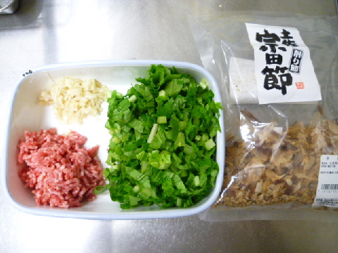 1.大根葉は小さく切る。しょうがはみじん切りにする。