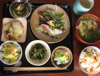 タタキと銀杏入り五目寿司の組み合わせが