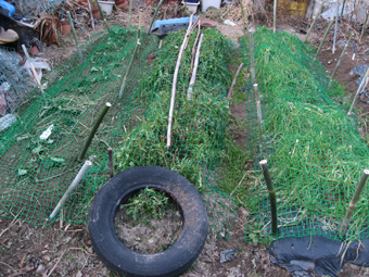 さらに作物に網をかぶせ…
