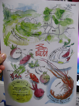 先日、ファーム・ベジコHP(http://vegeco.jp/)の見学に来られたラ・ヴィータの方が、素敵なイラストを描いてくれたということ♪