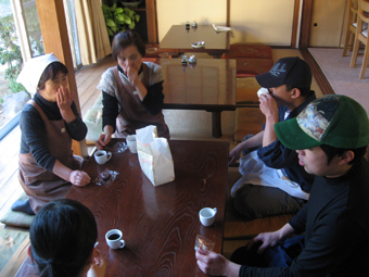 珈琲タイム。 「何か甘いもの欲しいね」 「あっ、これ食べる?」 「バレンタインデーに誰かに渡して下さいね」と 先ほど型抜きした生地を焼き上げてきてくれたクッキーを 何のためらいもなくその場で食べる私たち(笑)。 楽しかった☆ 松田君、また誘ってねー♪