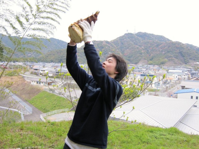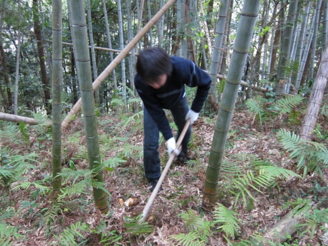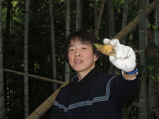 パリから帰省中の岳くん、たけのこ堀り初挑戦!