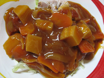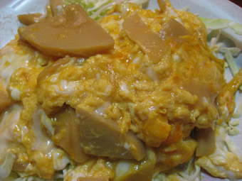 キャベツ&豚肉の炒め物の上に、タケノコあんかけ…