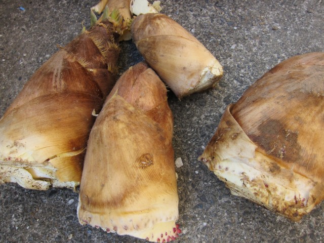 急に暖かくなり、タケノコ、にょきにょき、でてきました。