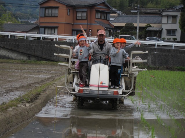 美味しいお米になあれ!無事、田植え終了、最終日は保育園児と一緒に植えました