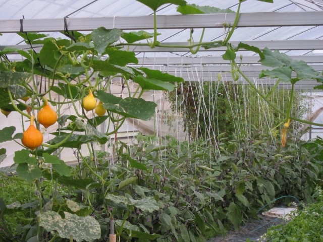 ナスやコリンキーも、ハウスの中で、すくすくと・・・