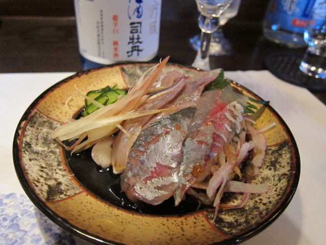 室戸沖で獲れたアジの薄作りに、