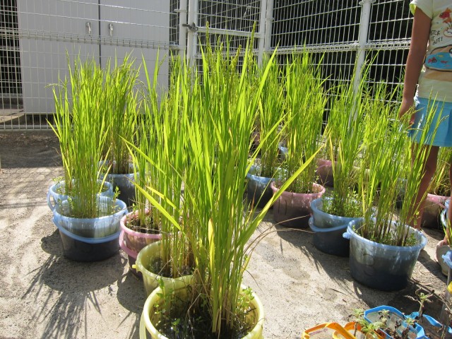 お米ができたと、大騒ぎ、バケツ水稲、順調良く生育中!