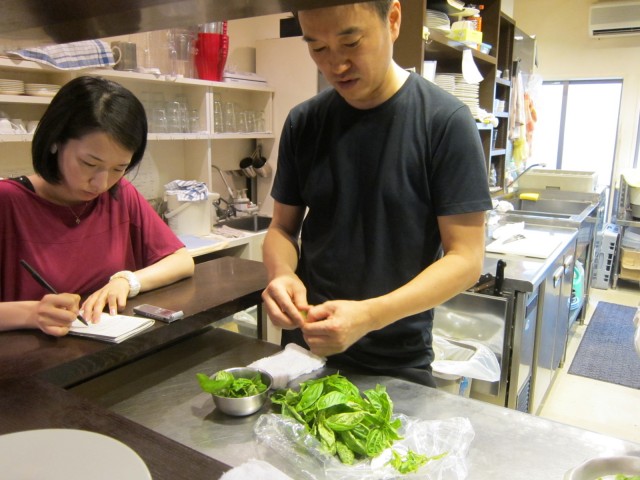 この日は、畑の取材と、うちのお野菜やハーブを使ってもらっている「レストラン 三木 ドゥーブル」さんの撮影