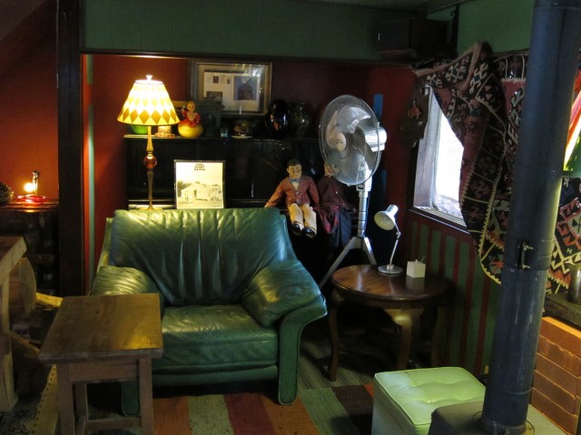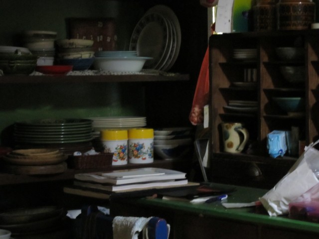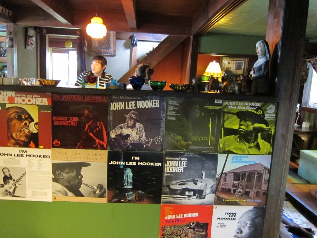世界中から集められた、食器やオブジェ、レコードジャケット、本、そして、藤島晃一の、作品が、びっしり!