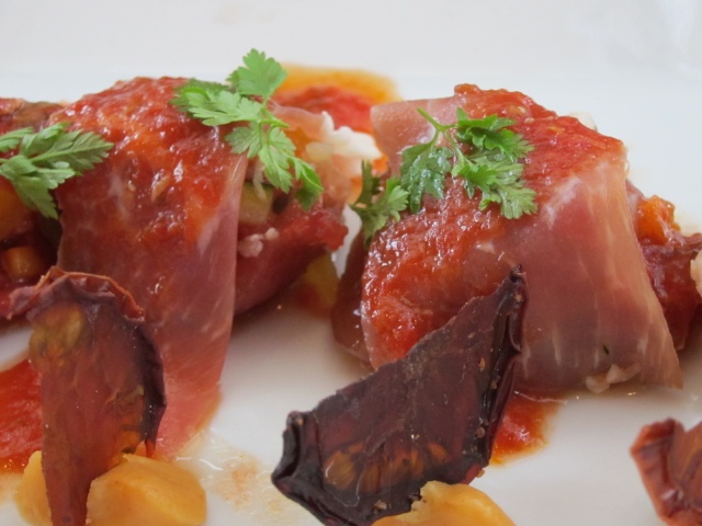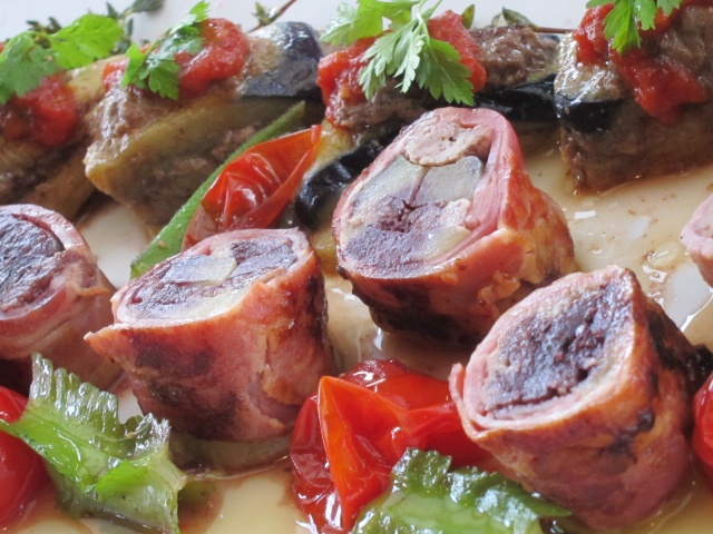 秋茄子のパフトン バジルの香り シカ肉のロール