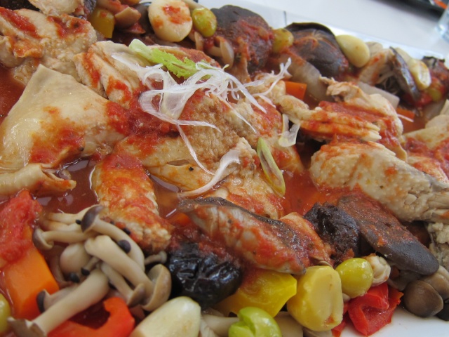 鶏肉と木の子、ぎんなんなど、秋らしいトマト煮込み