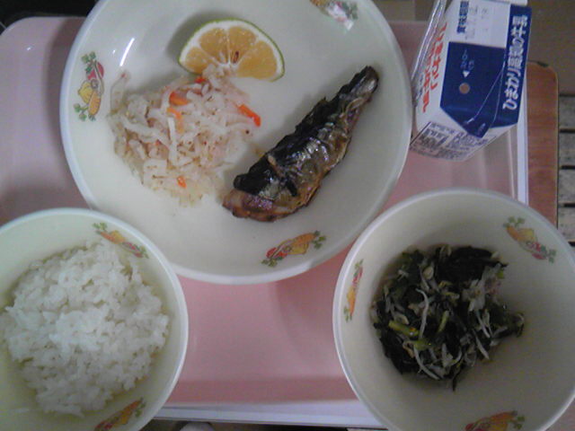 そして、今日の給食は秋刀魚の塩焼き、最近はやりの骨抜き魚ではありません!