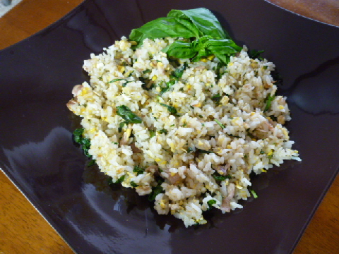 ※“ハーブの女王”を使った、エスニック風のチャーハンです。