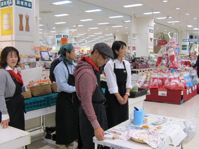 お芋の天ぷらや、野菜ジャムなどの、試食コーナーには、朝から夕方まで、お客様がひっきりなし。