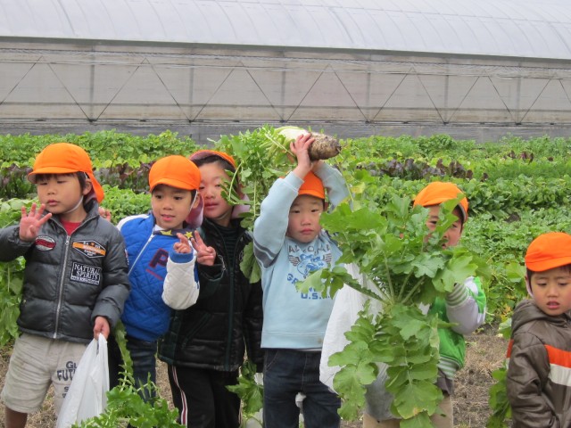 霜がはるような寒い日でしたが、子供達は、大きくなった大根に、大興奮!
